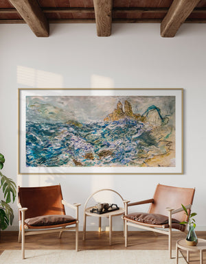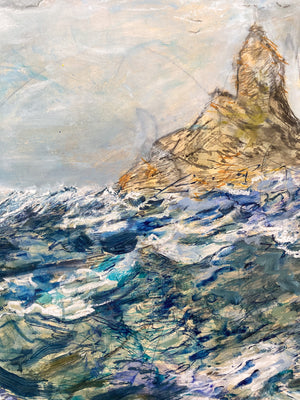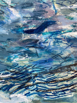 This large three panelled work is for those who love a wild winter's day on the coast when the sea is roiling with energy and power. Inspired by my walks along the Atlantic coast around Sintra and Cascais, Portugal, this painting brings you back to the brightest, clear days of winter when the seas are rough and you can really feel the vitality of the ocean from the clifftops.